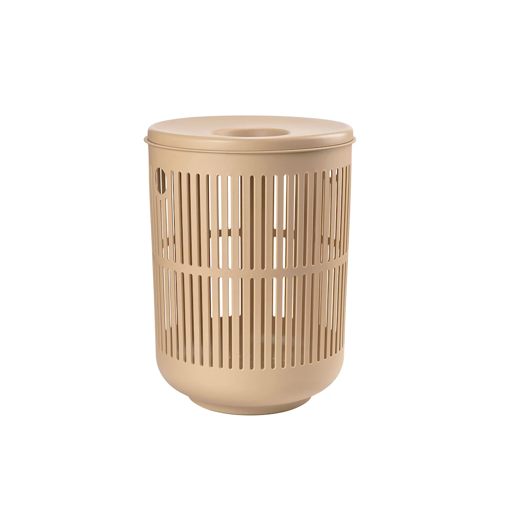 Organisk og praktisk – så enkelt kan man beskrive skittentøyskurven i Ume-serien fra Zone. Lokket kan enkelt løftes av, men det trenger du ikke alltid å gjøre. Strømper og andre små plagg kan nemlig kastes gjennom hullet i midten. På siden er det to mindre hull som fungerer som håndtak når du skal flytte skittentøyskurven.