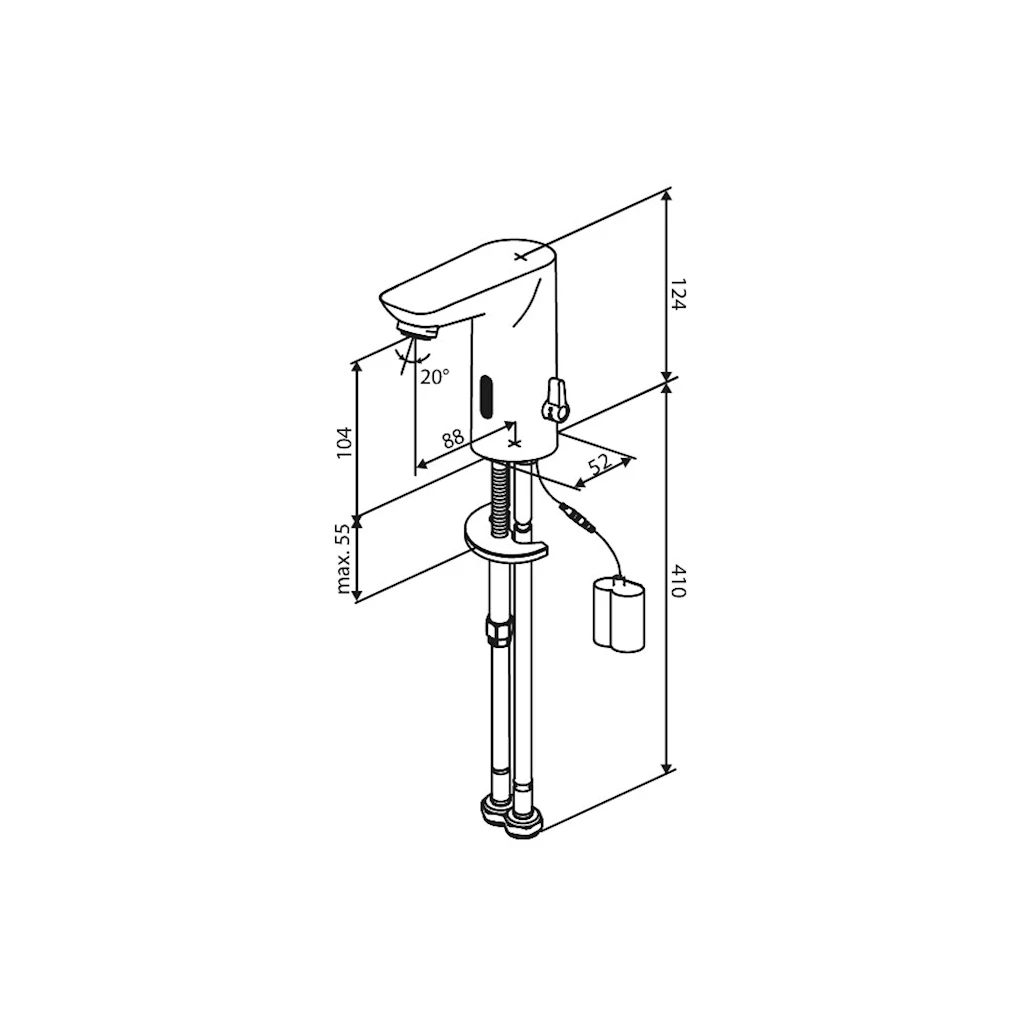 Berøringsfri servantbatteri med slitesterk og tidløs overflate i krom. Kranen egner seg perfekt til et gjestebad, og er enkel å vedlikeholde. Med maksimalt 5 liter per minutt får du en kran som ikke bare er effektiv, men som også er bra for miljøet.
