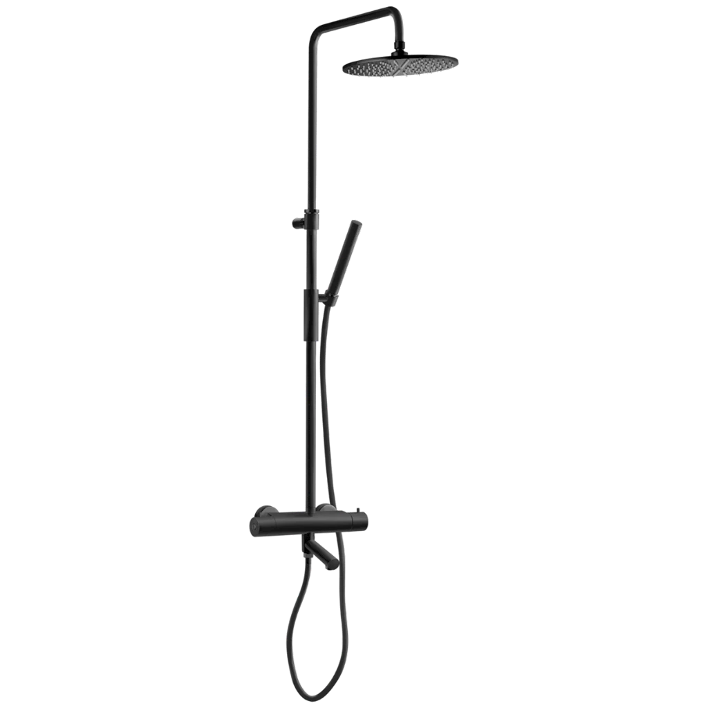 Takdusj med trykk- og termostartstyrt badekarbatteri matt sort