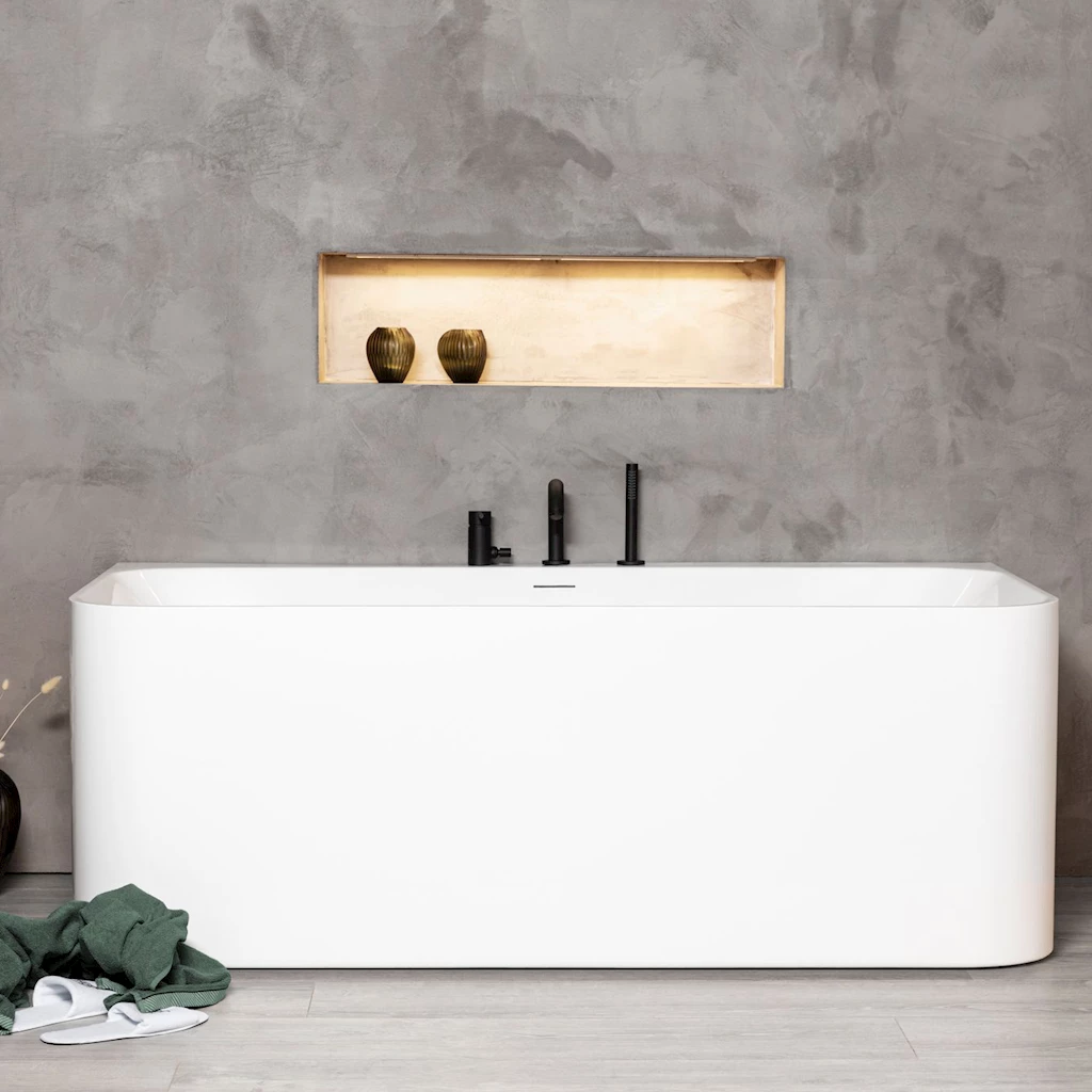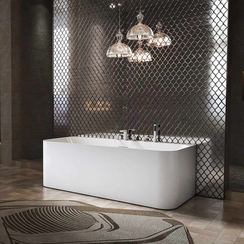 Sense er et “Back-to-wall” designbadekar som er helstøpt i sanitærakryl, med både front -og 2 endepaneler. Lekkert og moderne kvalitetsbadekar med god sitteplass i begge ender. Leveres standard med designoverløp, justerbare ben og avløpssett.