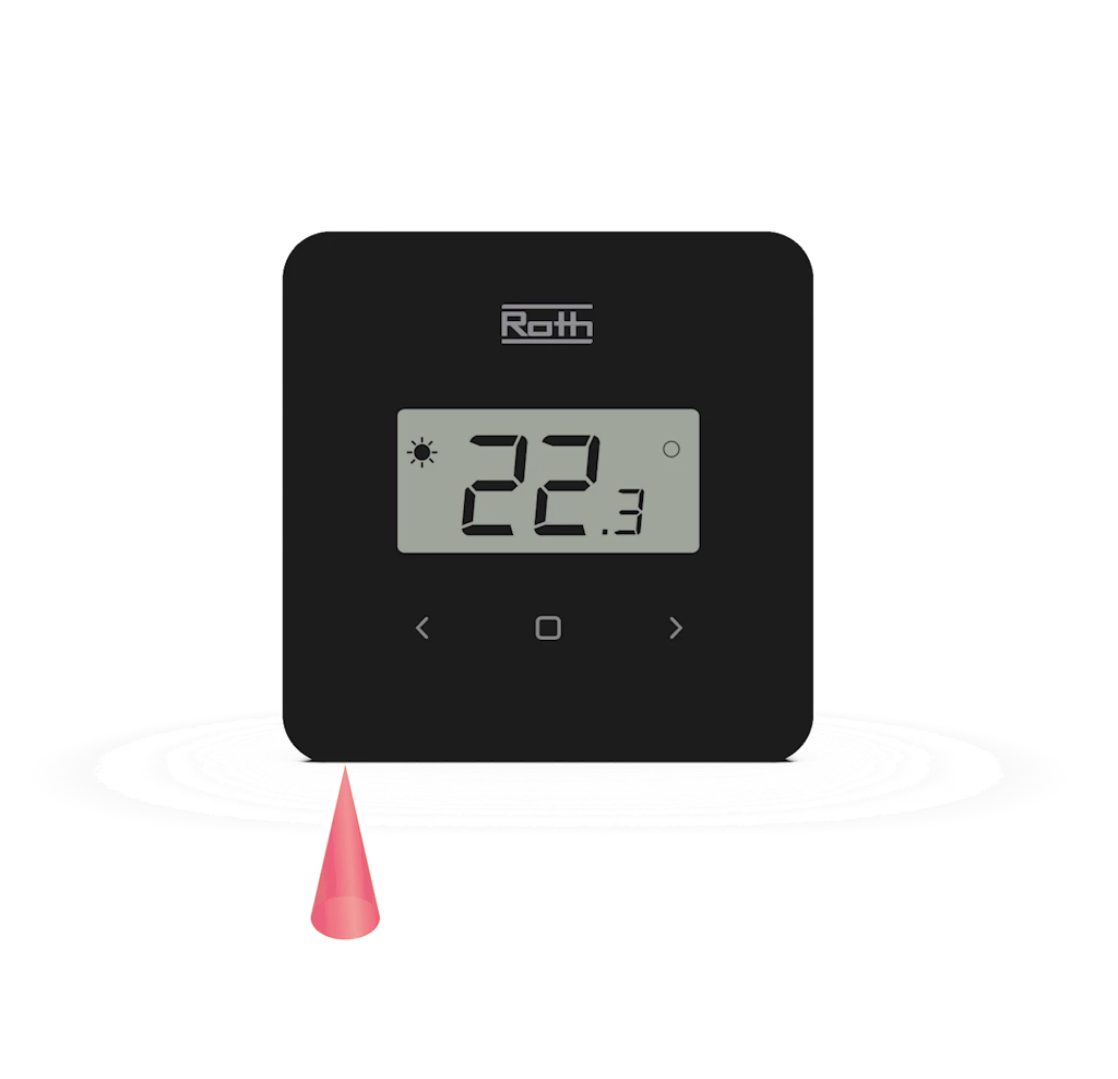 Termostaten har en integrert infrarød (IR) gulvsensor for å kontrollere gulvtemperaturen.