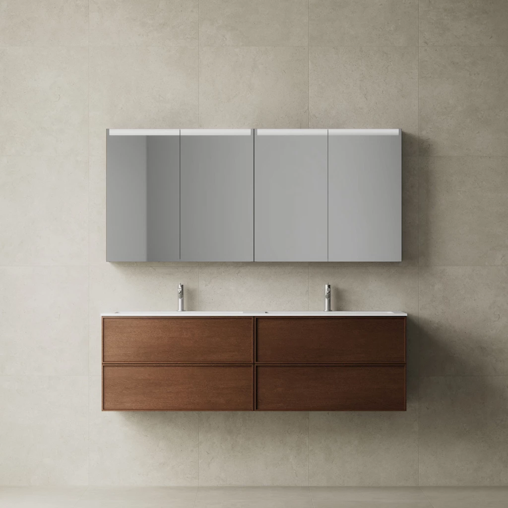 Stage er et funksjonelt speilskap med smarte løsninger for hverdagen. Lys og funksjoner styres enkelt via touchpanel. Et praktisk valg med et stilrent uttrykk.